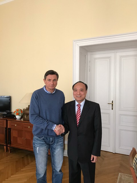 2月20日中午,赵厚麟在斯洛文尼亚首都会见该国总统Borut Pahor