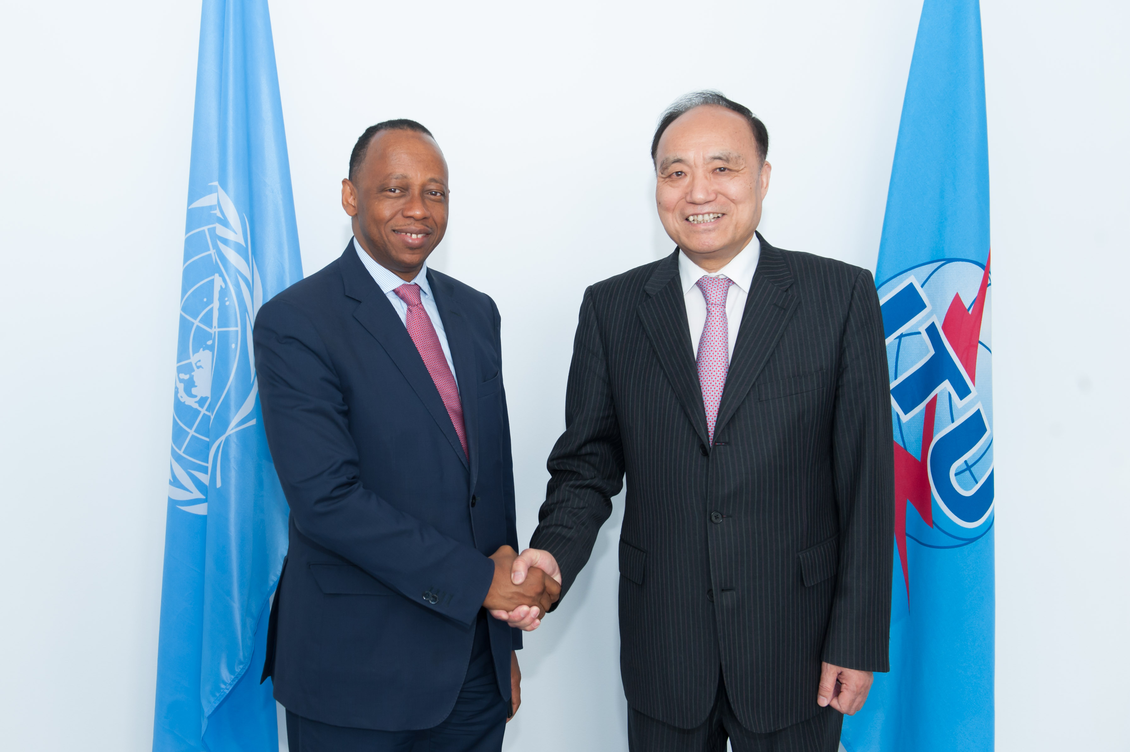 3月21日,赵厚麟在国际电联总部会见几内亚总理马马蒂.尤拉